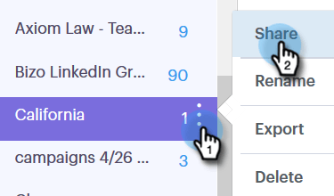 Klik op de gegevens (drie verticale stippen) en selecteer Share .