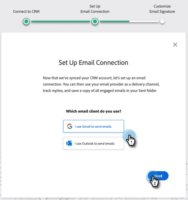 Kies de e-mailclient die u gebruikt (Gmail of Outlook ) en klik op Next .