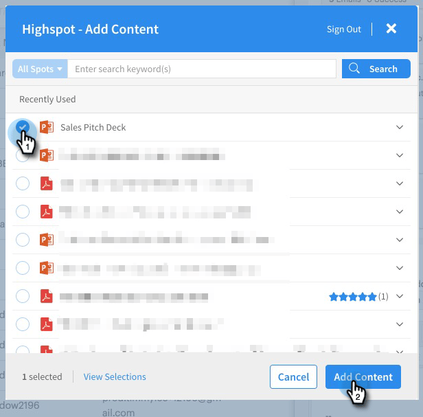 Toegang krijgen tot inhoud van Highspot en inhoud delen via e-mail accessing-highspot-content