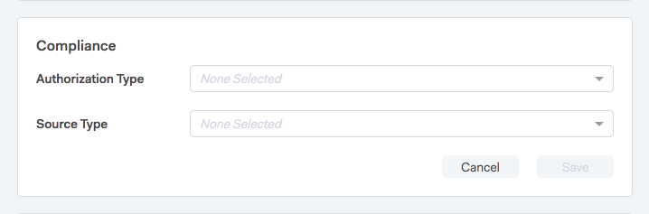 Er worden twee keuzemenu's weergegeven: Authorization Type en Source Type .