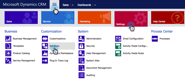 . Selecteer in de vervolgkeuzelijst Settings en selecteer vervolgens Solutions .