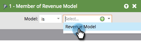 Zoek het filter Member of Revenue Model en sleep het naar het canvas.