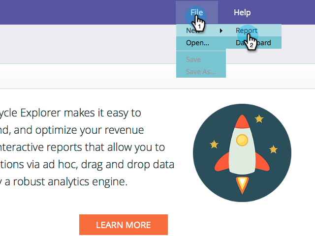 Als u een nieuw rapport wilt maken, klikt u op File en selecteert u New then Report .