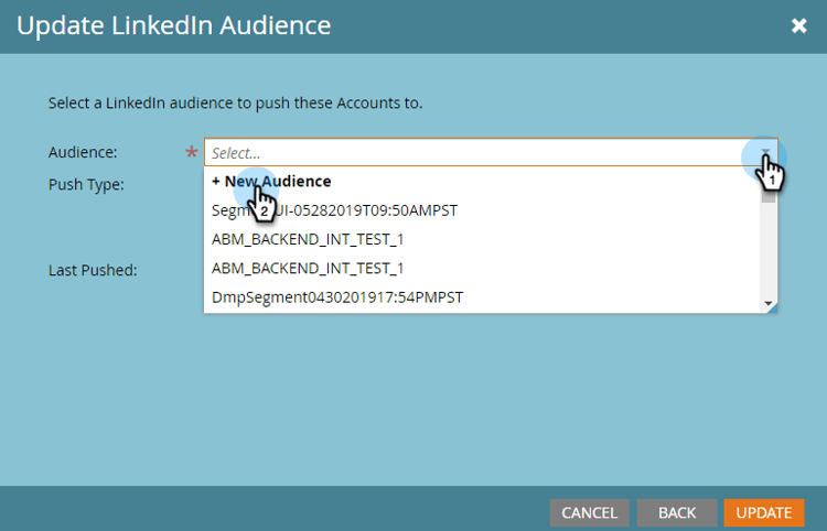 Creeer rekening aangepast publiek van uw de Rekeninglijsten van TAM voor LinkedIn en het richten . LinkedIn komt overeen met de lijst met accounts in hun systeem en u kunt een LinkedIn Publiek maken op basis van die accountlijst om op alle LinkedIn -kanalen te activeren. Dit laat marketers toe om mensen binnen of buiten hun gegevensbestand te richten.