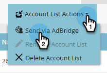 Klik op de vervolgkeuzelijst Account List Actions en selecteer Send via AdBridge .