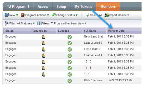 Bekijk en sorteer het lidnet tegen de datum dat de lood werd toegevoegd.