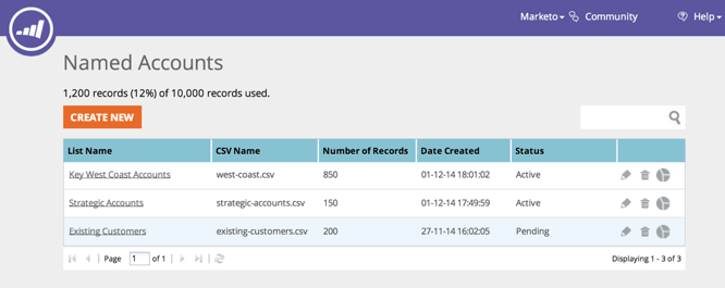 Beheer en controleer uw belangrijke high-profit accounts op de nieuwe Named Accounts pagina. Upload nieuwe lijsten van genoemde rekeningen om deze organisaties te identificeren en te richten. We hebben het proces geautomatiseerd, zodat u meer controle en flexibiliteit hebt om uw marketingplannen op basis van account te implementeren en uw belangrijkste accounts op verschillende kanalen (web en reclame) kunt plaatsen.