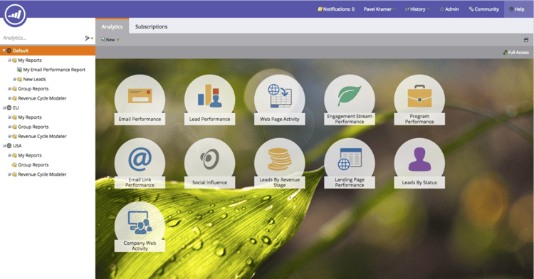 De nieuwe Analytics pagina van het Huis laat snelle toegang voor het runnen van ad hoc rapporten over beschikbare rapporttypes toe.