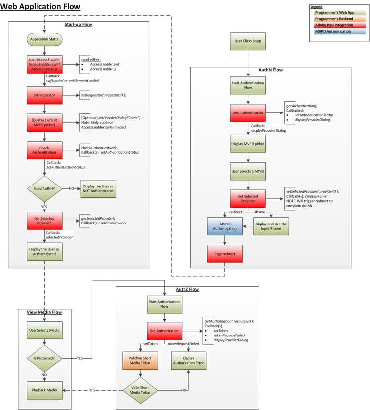 In dit document worden de workflows voor machtigingen beschreven die de toepassing op hoofdniveau van een programmeur implementeert voor JavaScript-integratie met de Adobe Pass-verificatieservice. Koppelingen naar de JavaScript API-naslaggids worden in de hele reeks weergegeven.