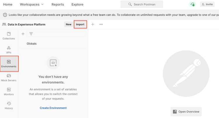 Nu kunt u de gegevens voorbereiden en importeren in uw platformsandbox. De Postman-verzamelingen die u hebt geïmporteerd, maken het hele heft!