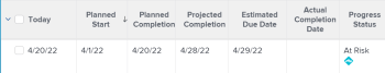 Adobe Workfront bepaalt de Voortgangsstatus van een project door de vooruitgang van het project over zijn chronologie te bekijken. U kunt Workfront vormen om de Voorwaarde van een project te bepalen dat op de waarde van de Status van de Voortgang van de taken wordt gebaseerd. Voor meer informatie over het vormen van de Voorwaarde van het project, zie het artikel Overzicht van het Type van de Voorwaarde en van de Voorwaarde van het Project .