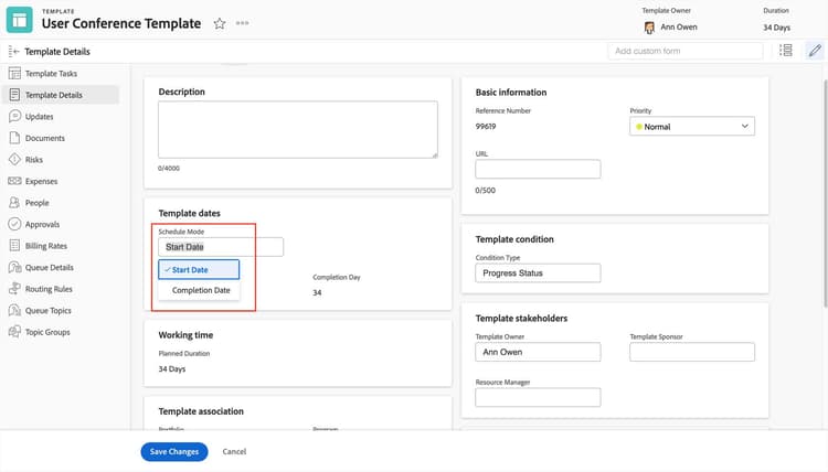 Ter modelos de projeto bem construídos e consistentes é fundamental para uma boa gestão de trabalho e relatórios precisos. Limite o número de usuários que podem editar modelos para evitar alterações acidentais ou não aprovadas.