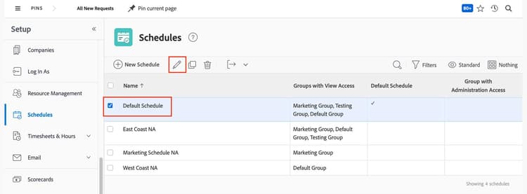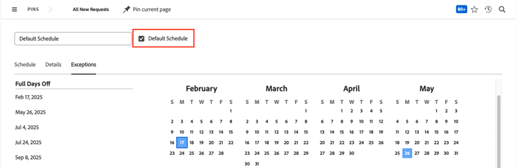 Nota: Apenas um administrador do sistema pode definir a programação padrão para a instância do Adobe Workfront.