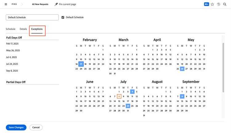 Clique em Salvar Alterações. Esta programação agora é o padrão para sua instância do Workfront.