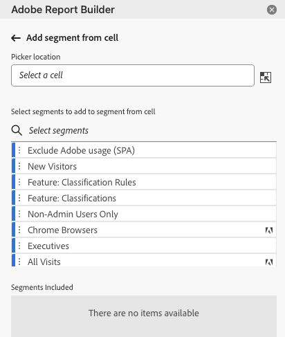 Adicione a opção de segmento que deseja adicionar à célula, clicando duas vezes no segmento ou arrastando e soltando na seção Segmentos incluídos.