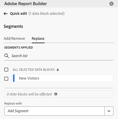 Você pode usar o painel Edição rápida para adicionar, remover ou substituir segmentos de blocos de dados existentes.