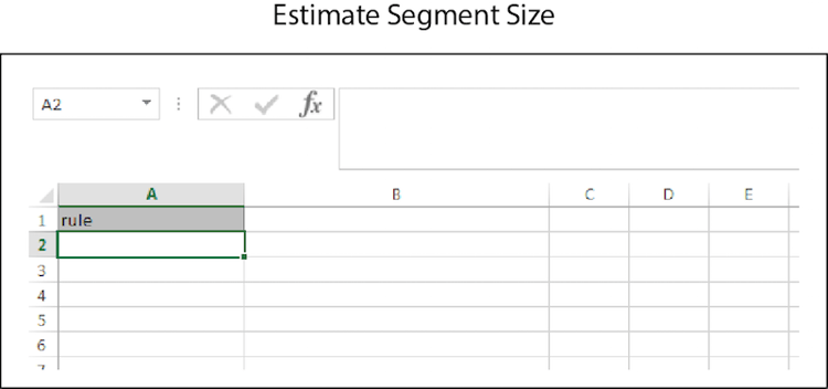 Esta ação cria uma coluna Response na planilha que contém os dados de tamanho estimado do segmento. Antes de inserir dados, sua planilha de estimativa em massa deve ser semelhante ao seguinte: