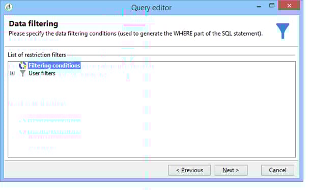 Configure o filtro de dados. Para fazer isso, selecione Filter conditions e clique em Next.
