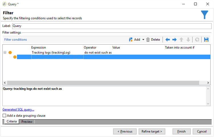 Clique em Finish na janela da fórmula. Na janela do filtro, clique na guia Preview para verificar os critérios de direcionamento.