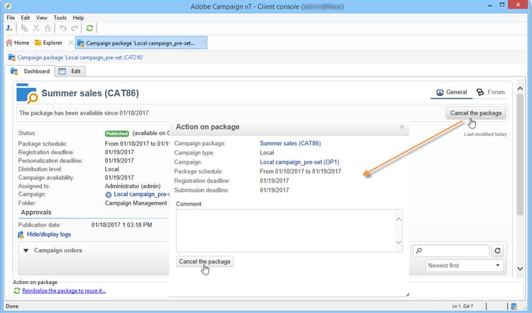 A entidade central pode cancelar um pacote de campanha a qualquer momento.