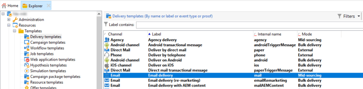 Navegue até a pasta Resources / Templates / Delivery templates e abra o modelo de entrega desejado. Neste exemplo, queremos editar o template do delivery de email.