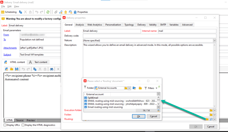 Para dividir contas externas como a conta padrão para enviar deliveries, é necessário alterar o provedor de roteamento em seus templates de delivery. Para fazer isso, siga estes passos: