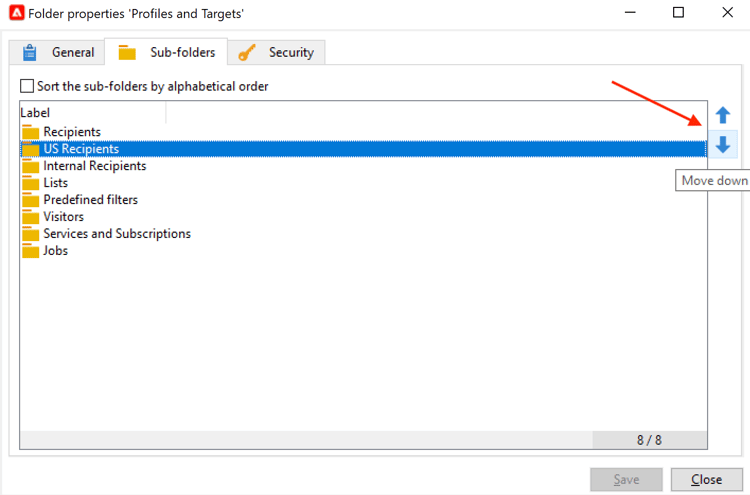 Você pode mover as pastas com as setas à direita ou selecionar a opção Sort the sub-folders in alphabetical order para classificá-las automaticamente.