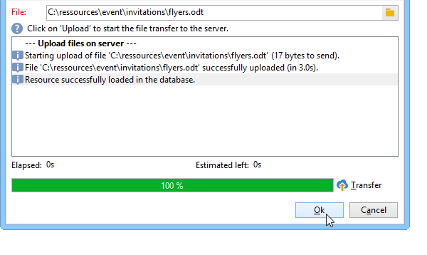 Para as duas primeiras opções, escolha Upload file on the server ao selecionar a opção apropriada. O link Update the file on the server permite iniciar o upload.