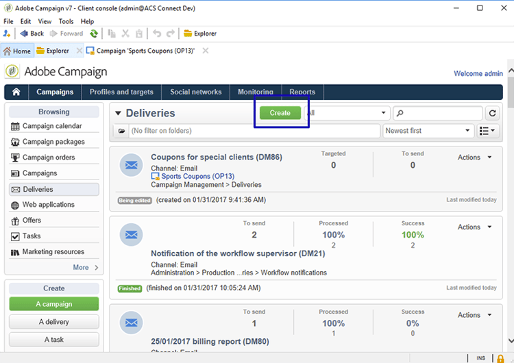 Vá para Explorer > Resources > Campaign management > Coupons.