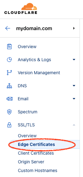 Selecione SSL/TLS no painel esquerdo e Certificados Edge na lista suspensa: