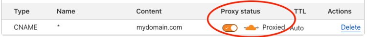 Ignoraremos a etapa de configuração do DNS, pois isso estaria além do escopo dessa simples apresentação. Verifique se o registro CNAME é Proxy: