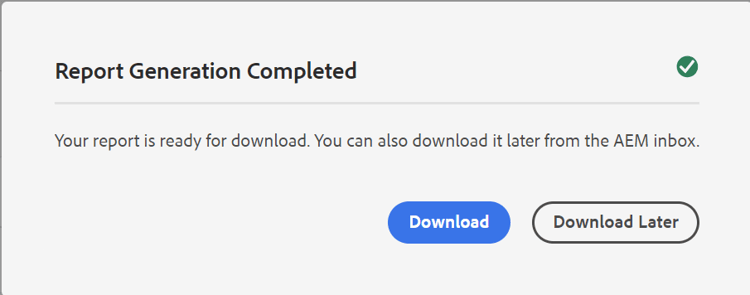 Posteriormente, também é possível baixar o CSV do relatório gerado na Caixa de entrada de notificações da Experience Manager.