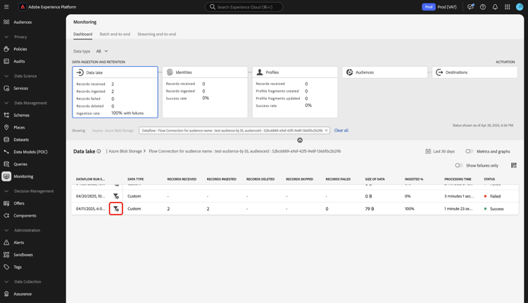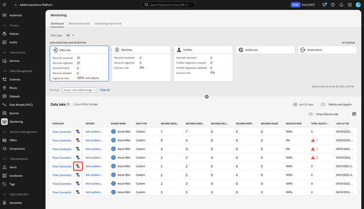 Usar o painel de monitoramento para assimilação do data lake