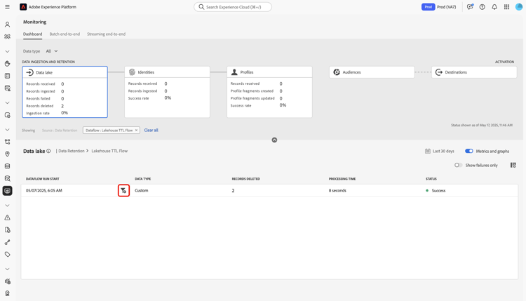 Leia este documento para saber como você pode usar o painel de monitoramento para monitorar todo o processamento de dados no data lake, incluindo a assimilação e a retenção.