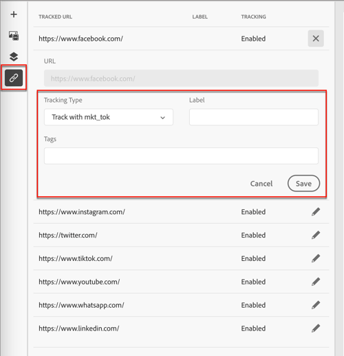 ) e modifique o Tipo de Rastreamento ou o Rótulo.Você também pode adicionar Marcas para um link.
