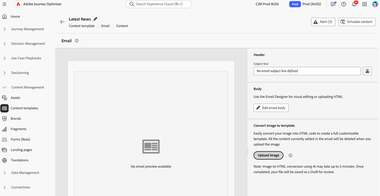 - Migração de plataforma: migrando de outra plataforma de marketing por email? Converter seus designs de email existentes em modelos do HTML prontos para AJO sem reconstruir do zero