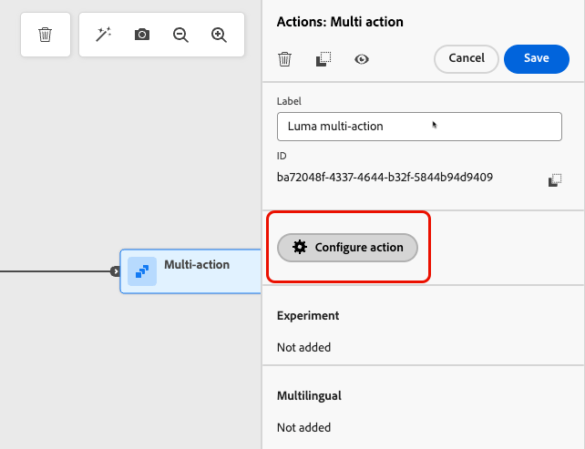Adicione um rótulo à sua ação e selecione Configurar ação.