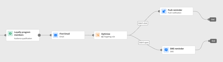 Os clientes que abriram um email, mas não clicaram, podem receber uma notificação por push, enquanto aqueles que não abriram recebem um SMS.