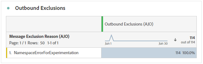 A tabela Exclusões de saída apresenta uma exibição abrangente dos diferentes fatores que resultaram na exclusão de perfis de usuário do público-alvo direcionado, resultando no não recebimento da mensagem.