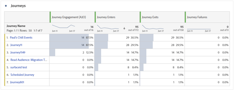 Ao clicar no nome de qualquer jornada listada nesta tabela, é possível explorar facilmente cada jornada individualmente, obtendo acesso imediato ao relatório abrangente em uma nova guia.
