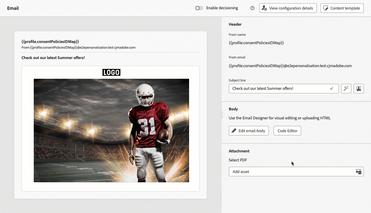 Agora é possível anexar um arquivo PDF estático a uma mensagem de email enviada com o Journey Optimizer.