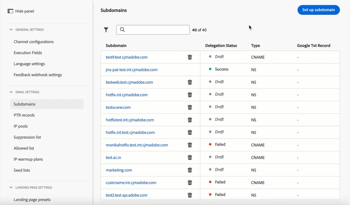 Além da delegação completa e do método CNAME, há um novo método de configuração de subdomínio disponível: o método de delegação personalizado, que permite controlar e manter totalmente todos os aspectos do DNS necessários para entregar, renderizar e rastrear mensagens.