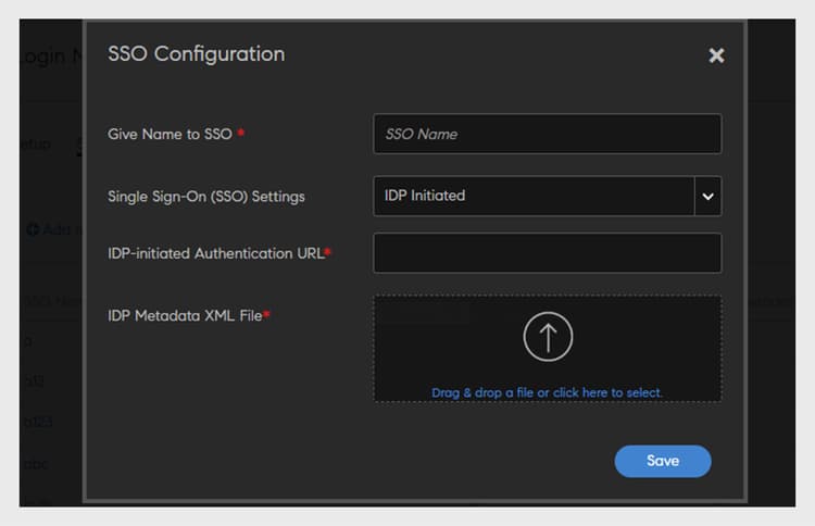 Selecione IDP iniciado no menu suspenso Configurações de logon único (SSO).