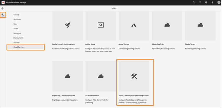 - Clique em Ferramentas > Cloud Service > Configuração do Widget do Learning Manager.