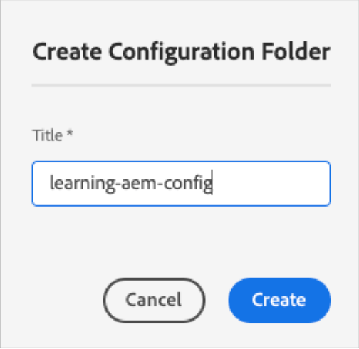 Clique em Criar > Pasta de configuração. Nomeie sua pasta.