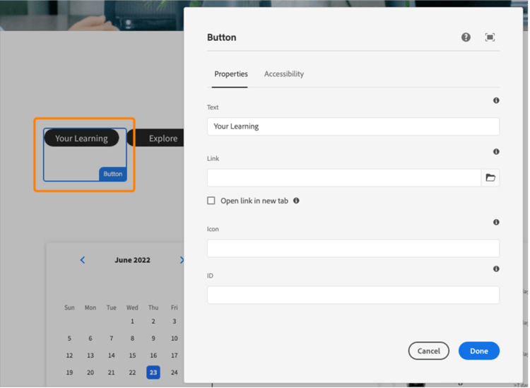 - Selecione Concluído e atualize a página no modo Visualizar ou Publish.