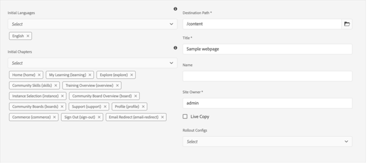 Depois de instalar o pacote do site do AEM, você deve configurar um aplicativo ALM para conectar seu portal de aprendizado ao site do AEM.