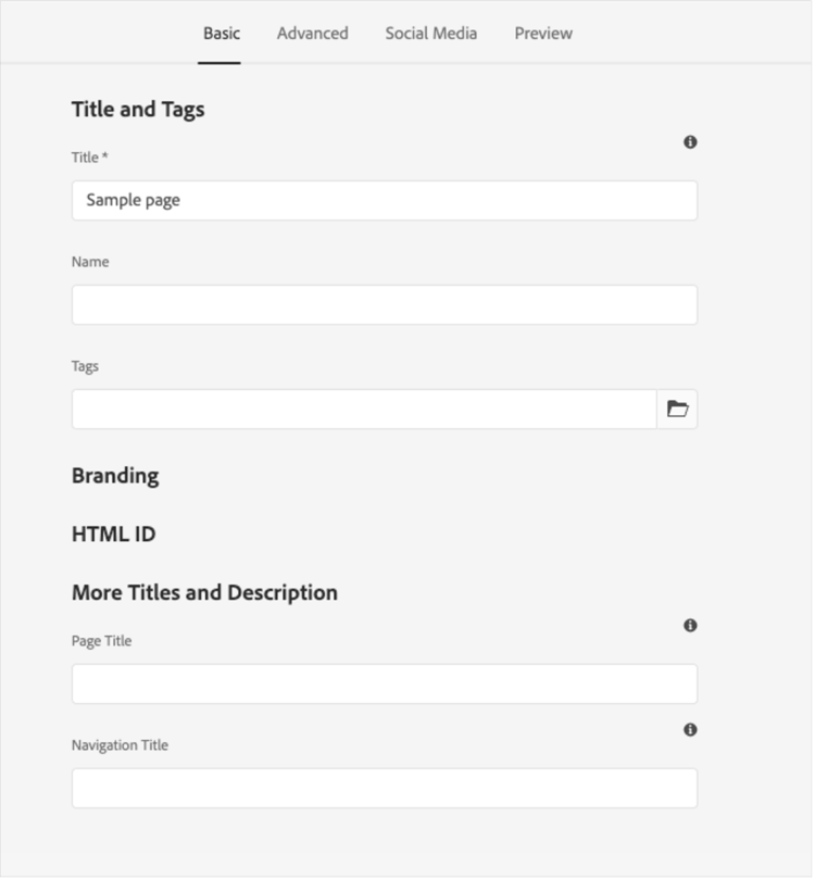 No editor da página de modelo, clique em Informações da página e em Política da página.