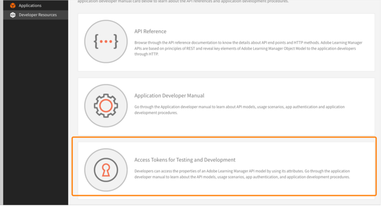 Na guia Recursos do Desenvolvedor, clique em Tokens de Acesso para Teste e Desenvolvimento.