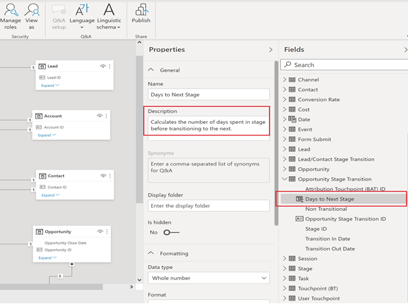 Não existe comparação direta entre o relatório Caminho de engajamento no Discover e no modelo. O relatório no Discover é modelado a partir do Ponto de contato, enquanto o relatório no modelo é modelado a partir do Ponto de contato de atribuição. O modelo se concentra exclusivamente nas oportunidades e seus pontos de contato relacionados, em vez de mostrar todos os dados de pontos de contato.